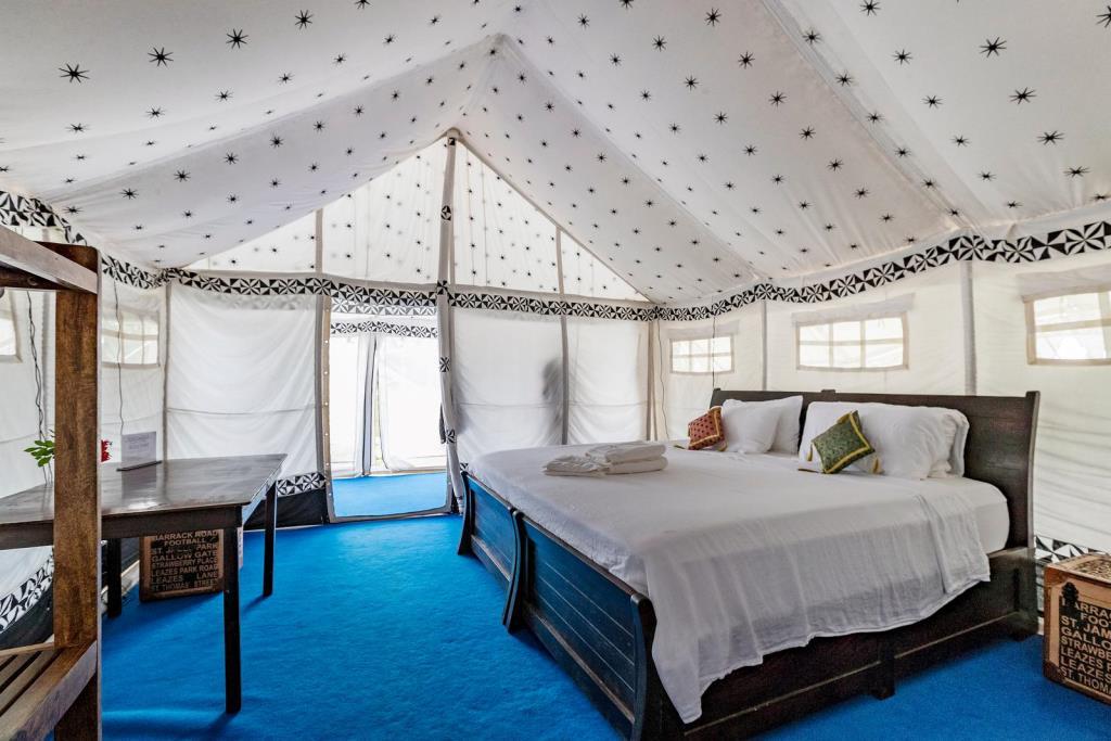 The accommodation is all of similar quality standard. Rooms and tents all have large King sized beds that separate into single beds when required. The bedding is made from high quality 100% linen is only one season old. Each room/tent has a safe, clothes hanger, hand basin, hot shower and toilet.